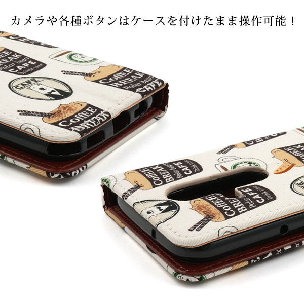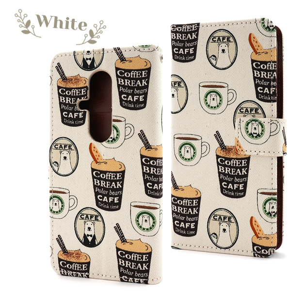 <スマホケース>らくらくスマートフォン F-53E用 シロクマ&コーヒーデザイン手帳型ケース