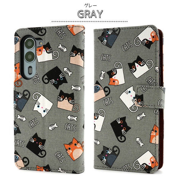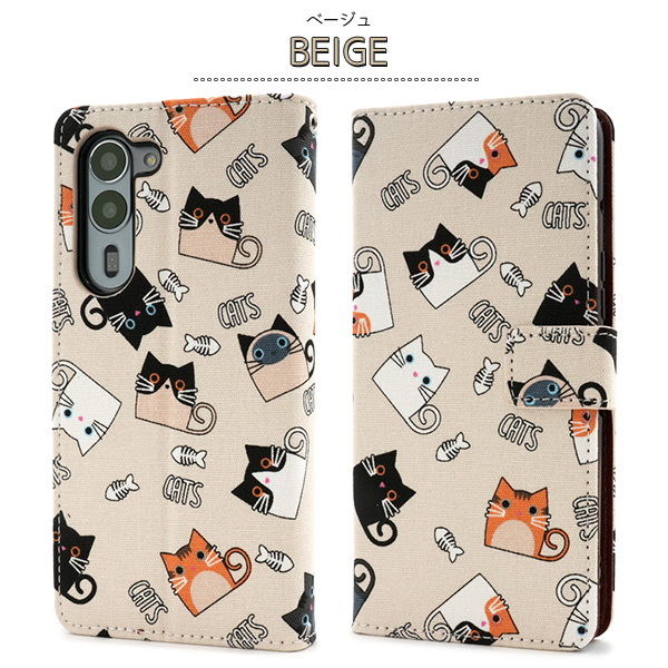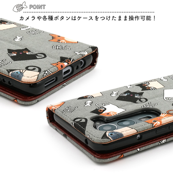 食いしん坊な猫ちゃん達を全面にプリントした生地を使用した手帳型ケースです。