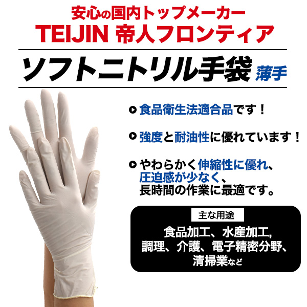 特価! 帝人 パウダーフリー・薄手・ホワイト ソフトニトリル手袋 100枚入り Sサイズ