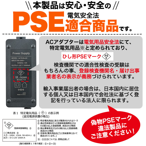 本製品はPSE(電気安全法)適合したACアダプターなので、