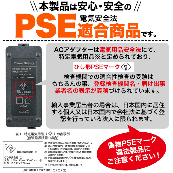 本製品はPSE(電気安全法)適合したACアダプターなので、
