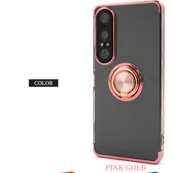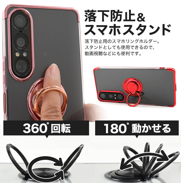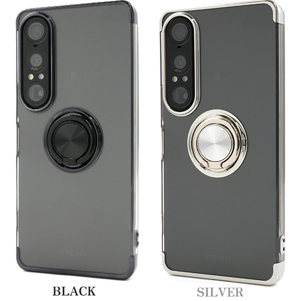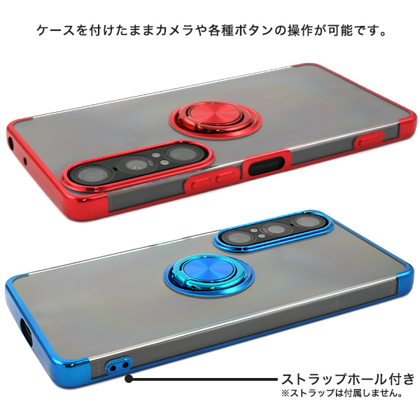 Xperia 1 VII SO-51F/SOG15/A501SO/XQ-FS44用スマホリング付きメタルカラーバンパーソフトクリアケース