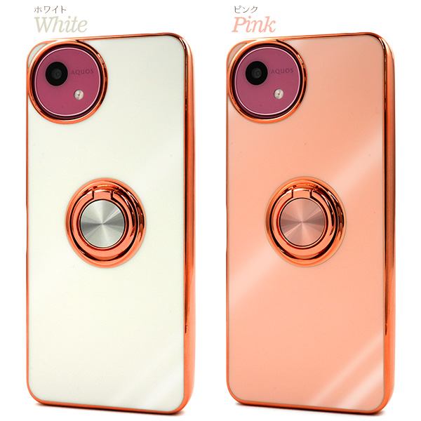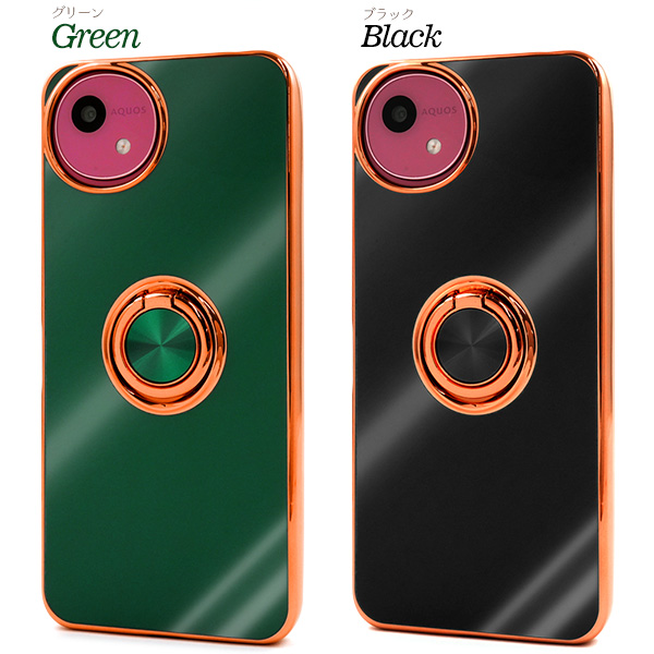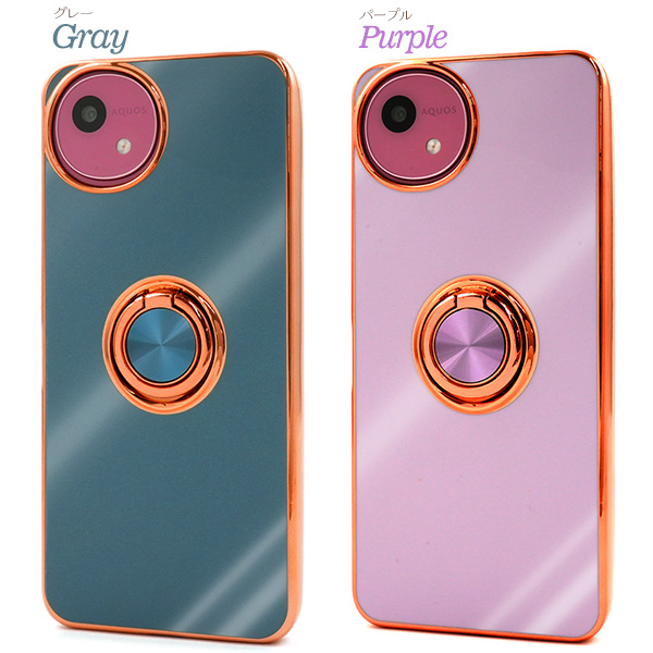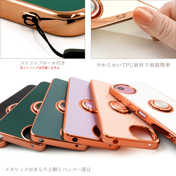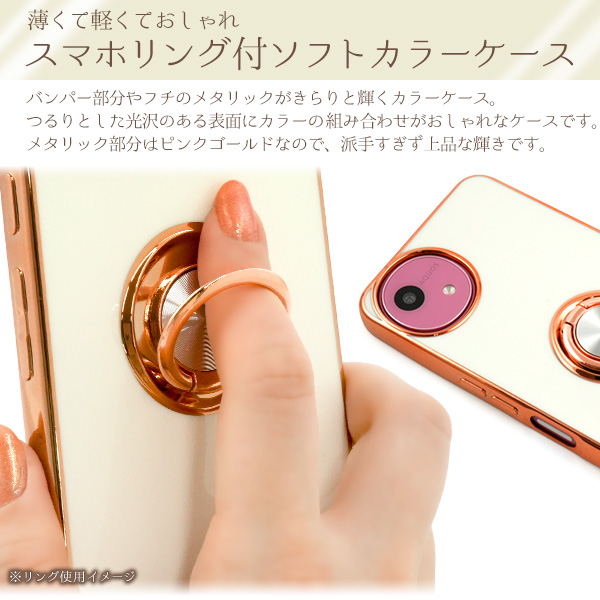 AQUOS wish5 SH-52F/A502SH/SH-M32用スマホリング付メタリックバンパーソフトカラーケース