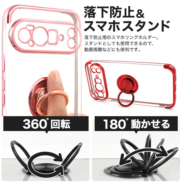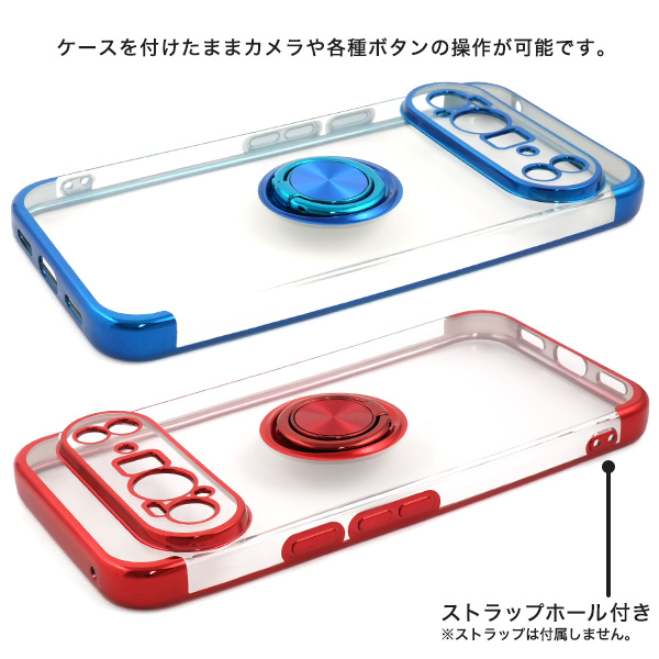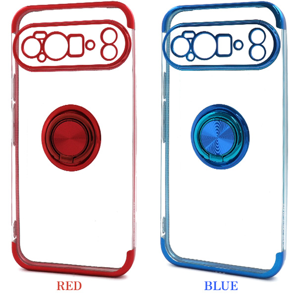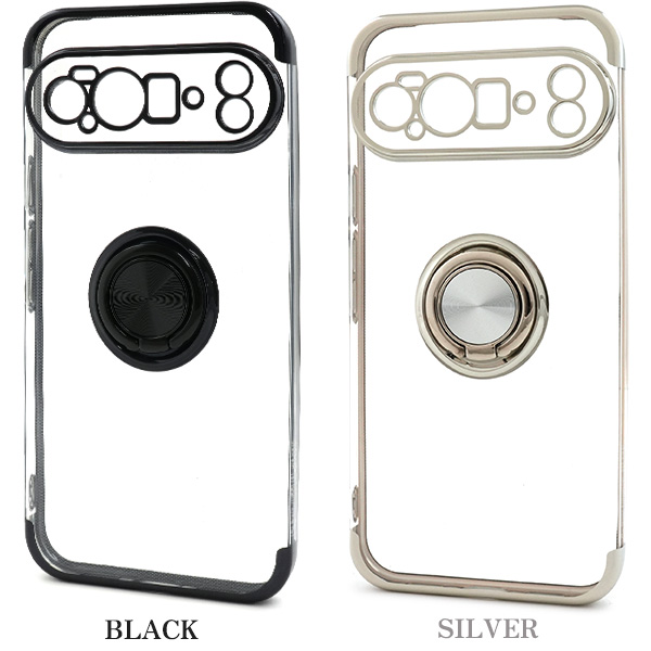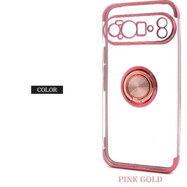 Google Pixel 10 Pro XL用スマホリング付きメタルカラーバンパーソフトクリアケース