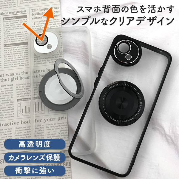 スマホ背面の色を活かす、シンプルなクリアデザインです。