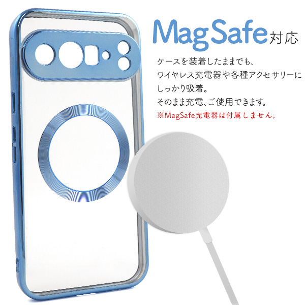 <スマホケース>Google Pixel 10 Pro XL用MagSafe対応メタリックバンパーソフトクリアケース