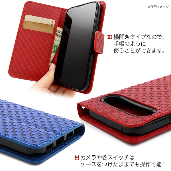 存在感抜群!市松模様レザーデザインの手帳型ケース。