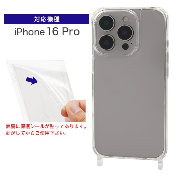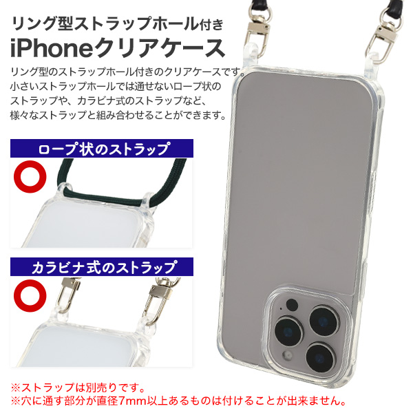<スマホケース>iPhone 16 Pro用リング型 ストラップホール付き クリアケース