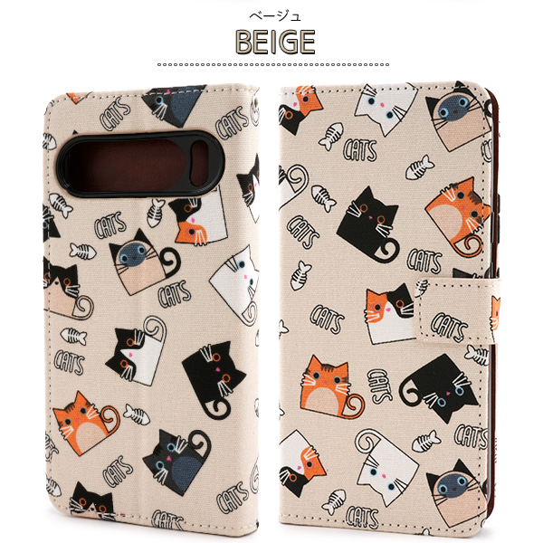 <スマホケース>Google Pixel 10 Pro XL用くいしんぼう猫手帳型ケース