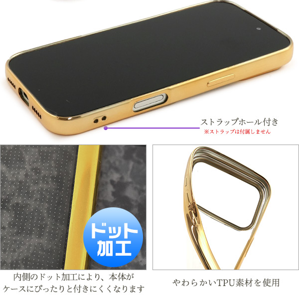背面はクリア、バンパー部分やフチはメタリックのケースです。