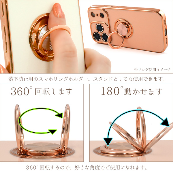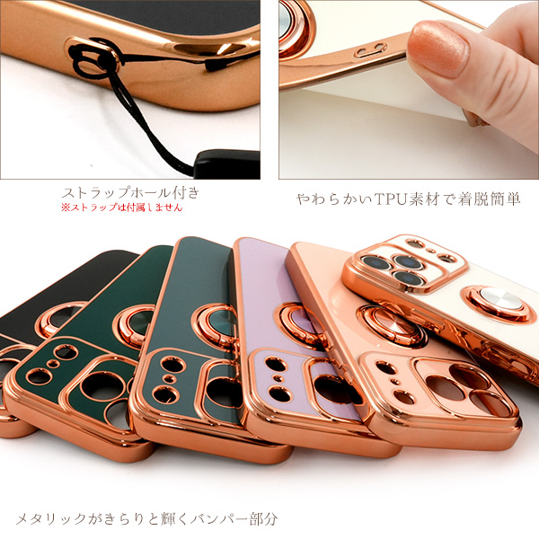 <スマホケース>iPhone 17 Pro用スマホリング付メタリックバンパーソフトカラーケース