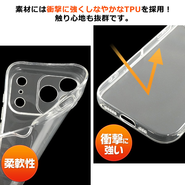 <スマホ用素材アイテム>iPhone 17 Pro用マイクロドット ソフトクリアケース カメラ部分保護タイプ