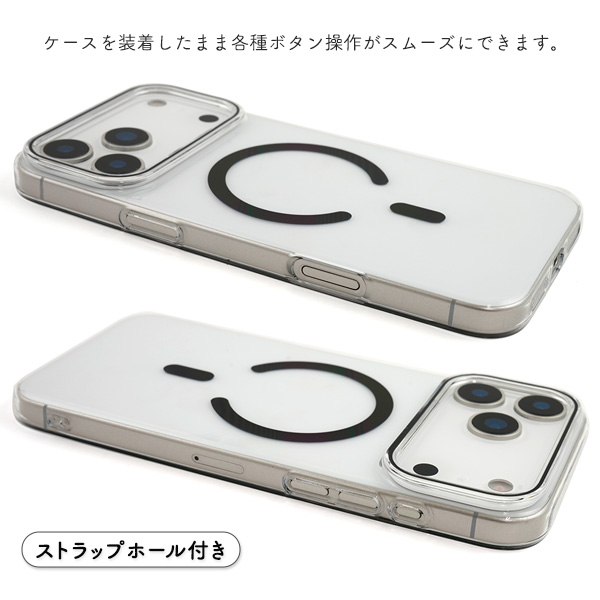 | 注意事項 | ※画像の色調はご使用のモニターの機種や設定により実際の商品と異なる場合があります。 ※ライセンス商品ではありません。 ※スマートフォンは付属しません。 ※MagSafe充電器は付属しません。 ※本製品は強い衝撃からスマートフォンを保護することは出来ません。 ※広角モードで撮影すると、ケースが映り込む場合があります。 |