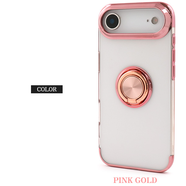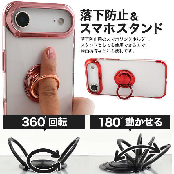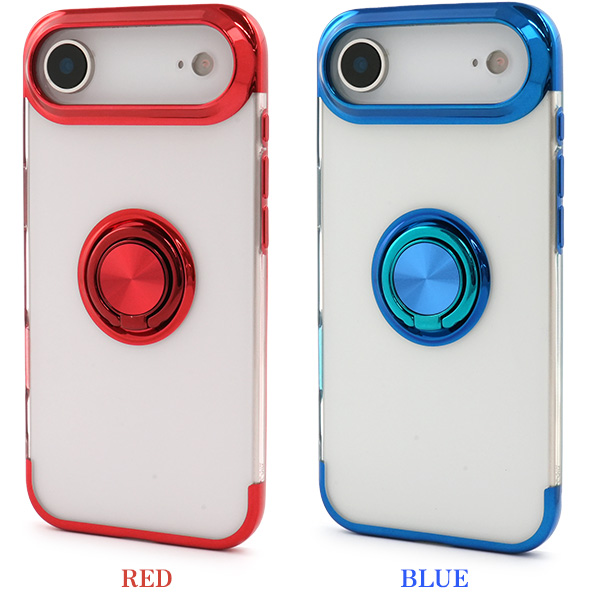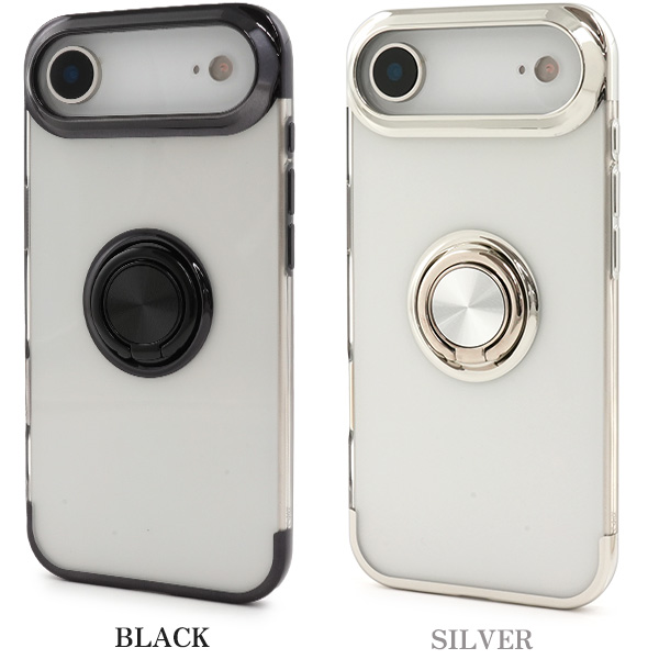 <スマホケース>iPhone Air用スマホリング付きメタルカラーバンパーソフトクリアケース