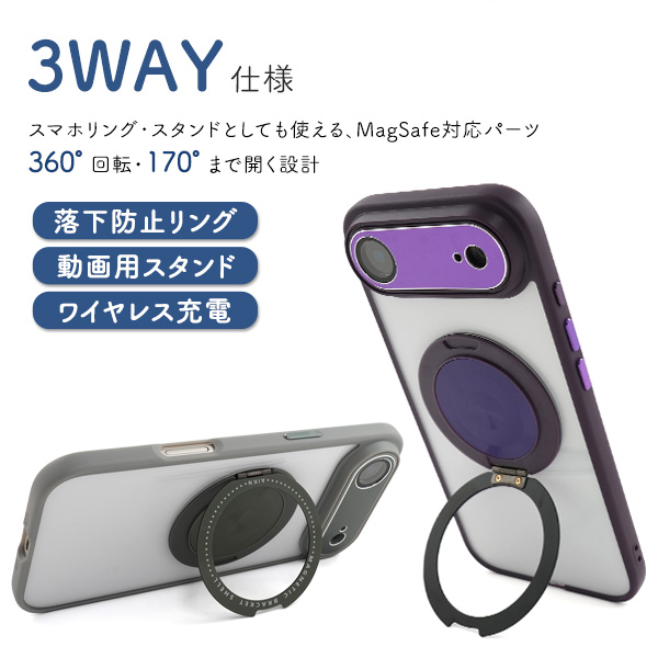 また、スマホリングやスタンドとしても使える3WAY仕様!
