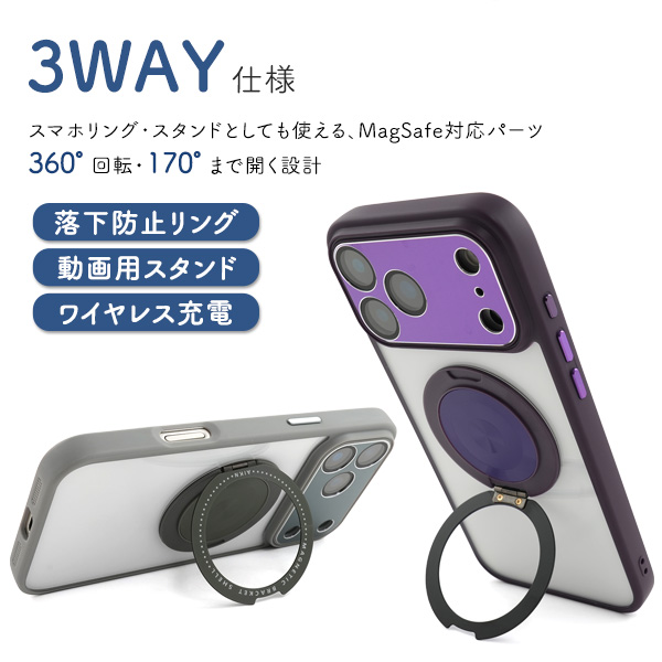 また、スマホリングやスタンドとしても使える3WAY仕様!