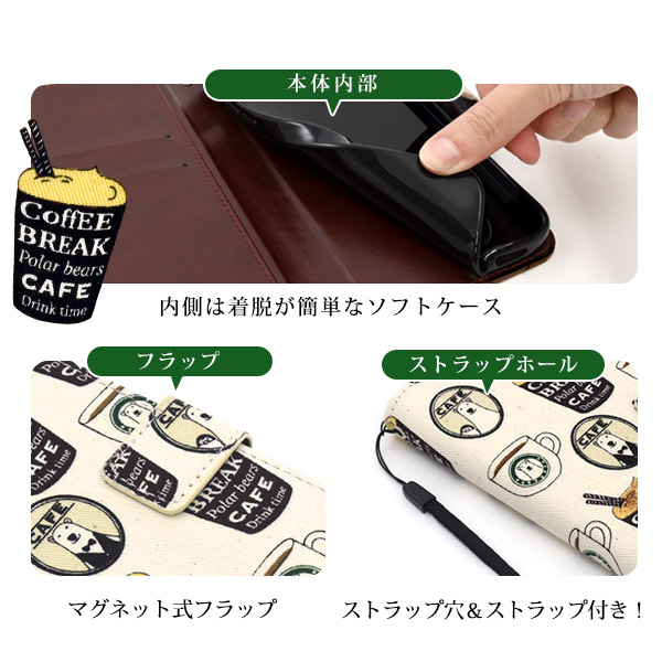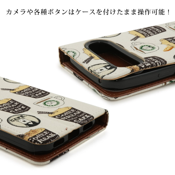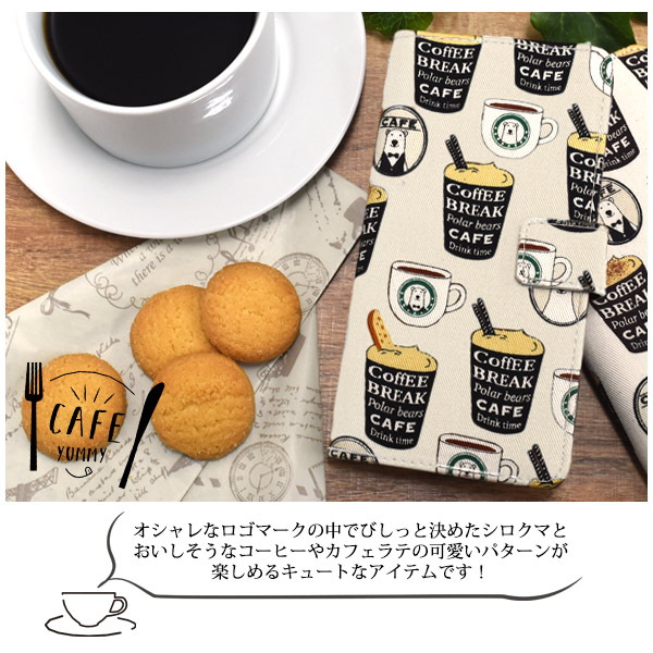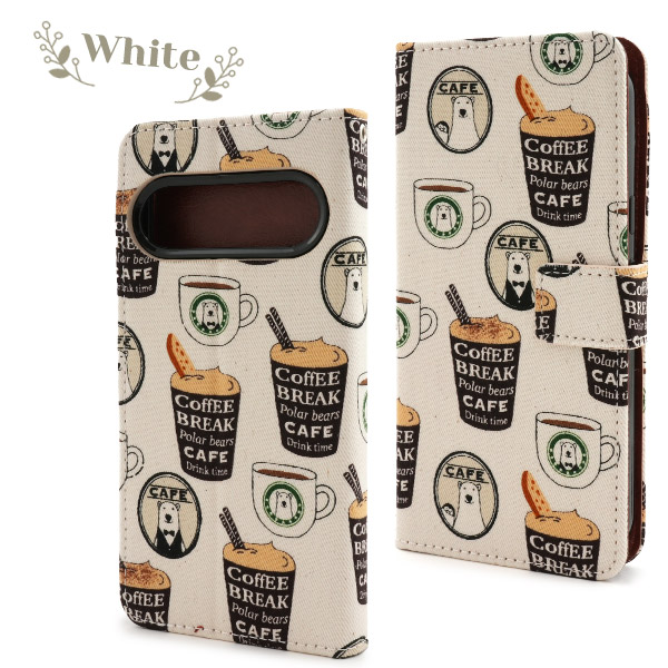 <スマホケース>Google Pixel 10/10 Pro用 シロクマ&コーヒーデザイン手帳型ケース