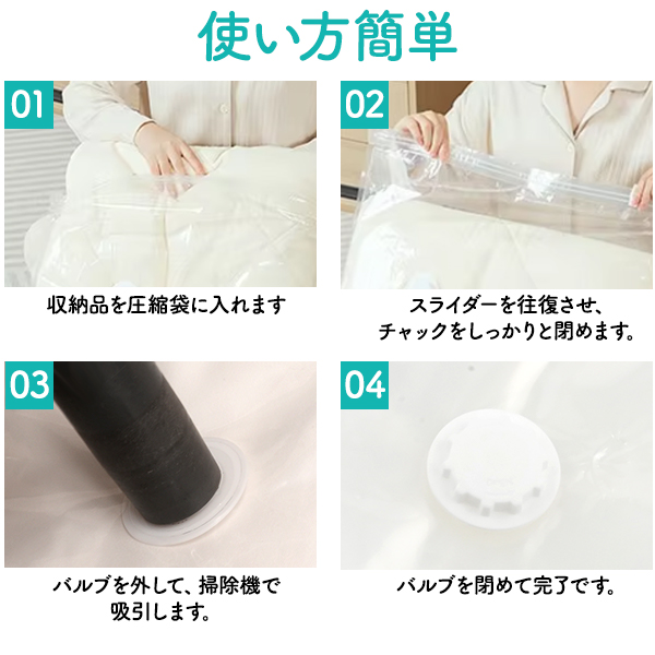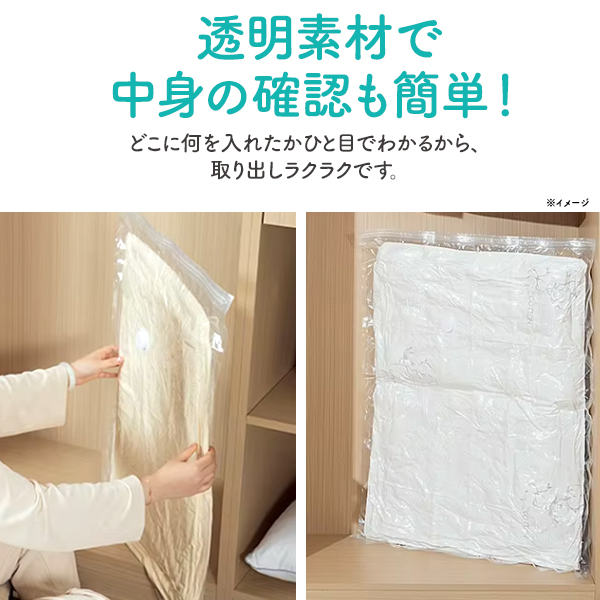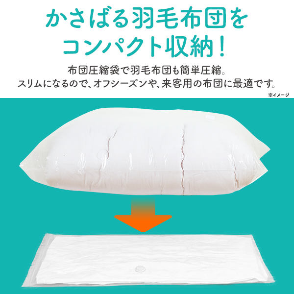 オフシーズンや来客用の布団を、スリムに圧縮してスッキリ収納できる布団圧縮袋です。