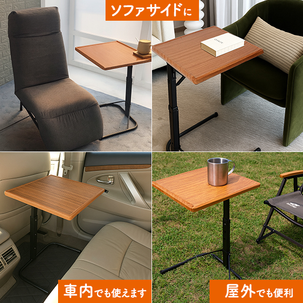 3段階に高さ調整が可能。ローテーブルとしても、ソファやベッドのサイドテーブルとしても活躍します。
