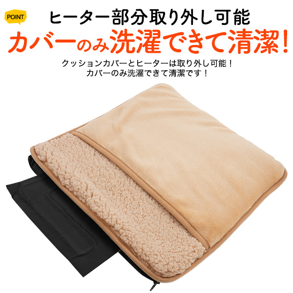 クッションカバーとヒーターは取り外し可能!カバーのみ洗濯できて清潔です!