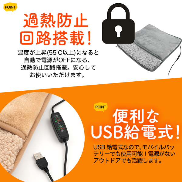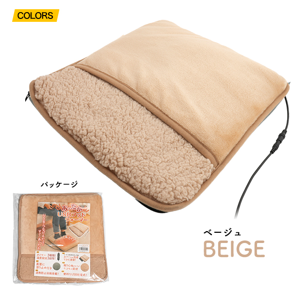3種類タイマー+温度設定3段階付き! USBフットウォーマー グレー/ベージュ