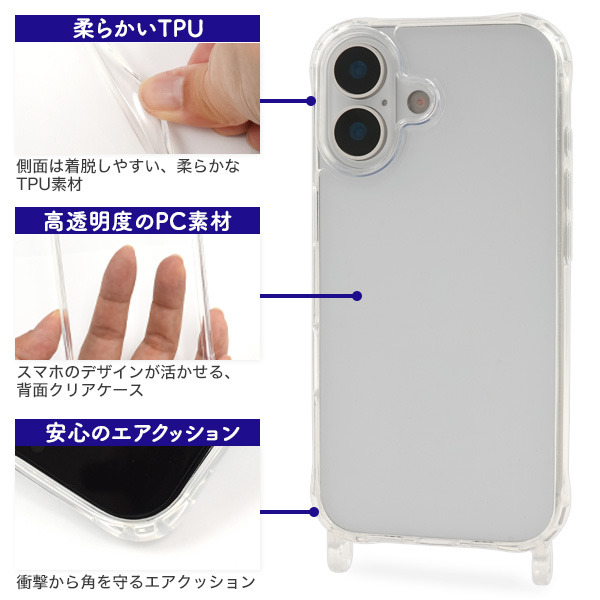 側面はソフトなTPU素材で着脱簡単!背面はiPhoneのデザインを活かせるクリアケースで、