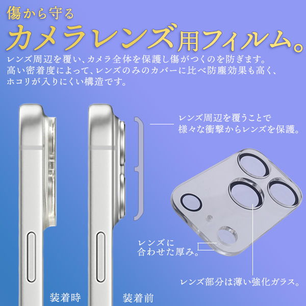 カメラレンズ全体を守る保護ガラスフィルム。