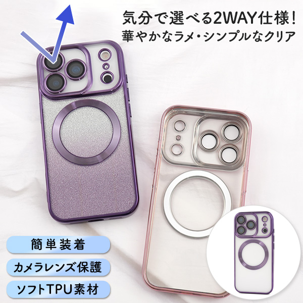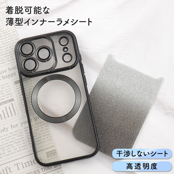 <スマホケース>iPhone 17 Pro用MagSafe対応インナーシート付ラメケース