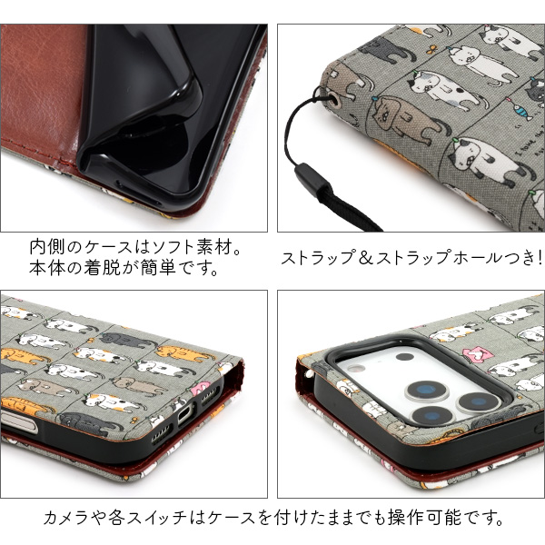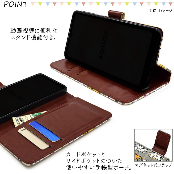 | 注意事項 | ★生地を取る場所により、デザイン、色味は画像と異なる場合がございます。 ★広角モードで撮影すると、ケースが映り込む場合があります。 ※本製品はマグネットを使用しておりますのでクレジットカードなどの磁気カードの収納は避け、カードの注意事項をよくご確認の上ご使用ください。読み取り等ができなくなる恐れがあります。 ※本製品に収納された、カードのデータ等が喪失された場合におきましても、当社では一切保証致しかねます。 ※長時間接触していたり、強い力で擦れるとスマートフォンに色移りする場合がございます。 ※本製品をスマートフォンに装着する際には本体や本製品に付着したゴミやホコリをよく取り除いてください。ホコリ等がついたまま装着すると、スマートフォンに傷がつく恐れがあります。 ※本製品は強い衝撃からスマートフォンを保護することは出来ません。 ※スマートフォンは付属しません。 ※ライセンス商品ではありません。 ※デザイン、色味は画像と異なる場合があります。 ※画像の色調はご使用のモニターの機種や設定により実際の商品と異なる場合があります。 |