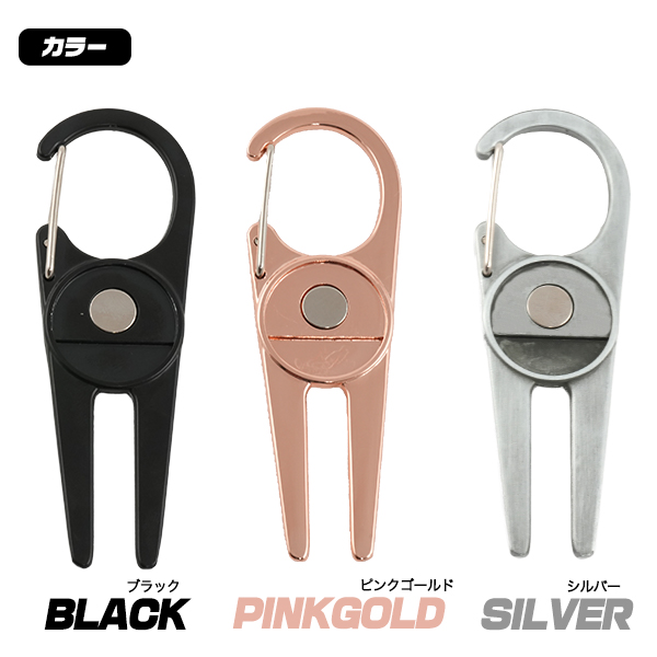 ゴルフマーカーが装着できるカラビナフック付きグリーンフォーク。