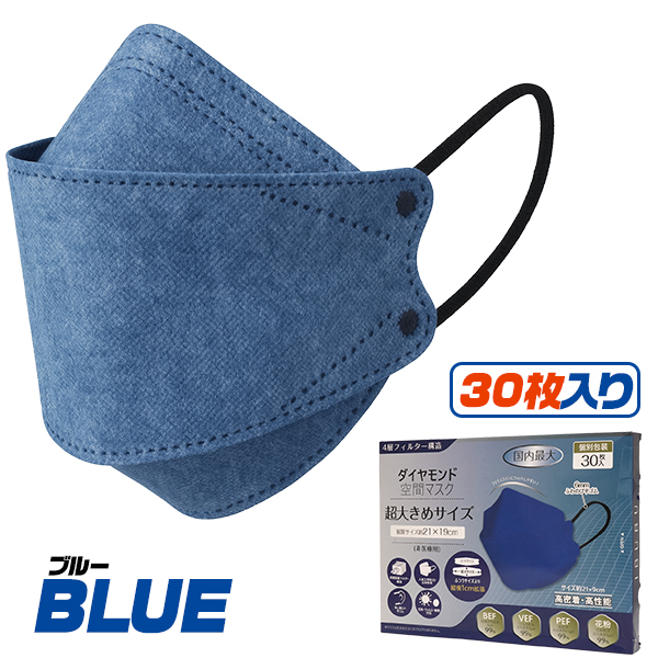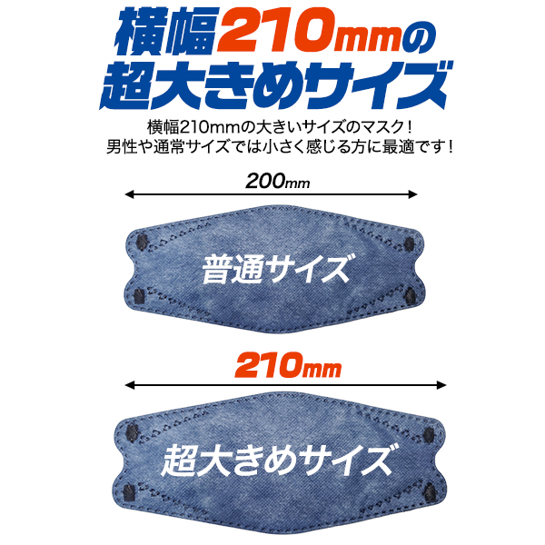 ●超大きめサイズで、一般的なマスクより約20%大きく、ゆったりと装着できます。