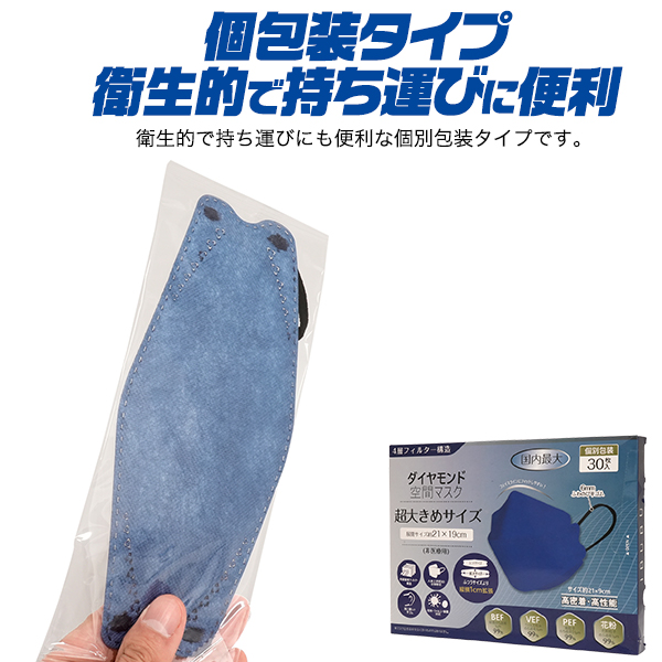【4層構造、超大きめ】 個別包装 横幅210mm 超大きめマスク 30枚入り