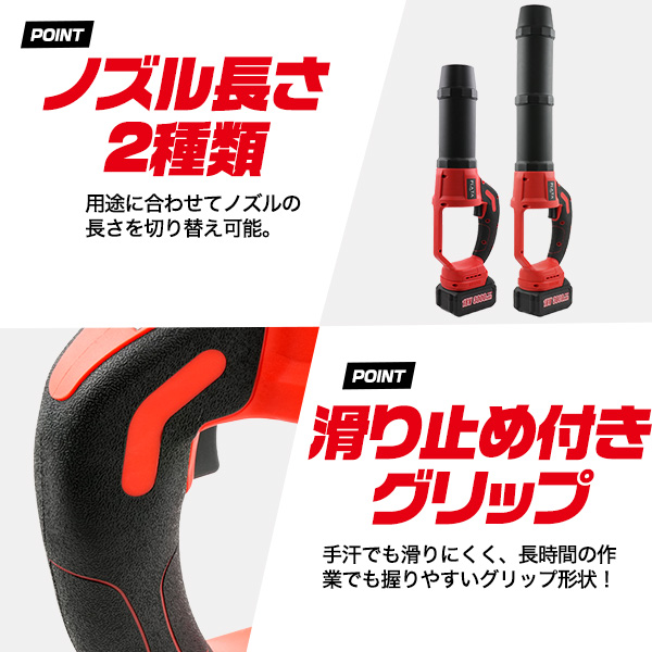 片手で扱えるコンパクトなボディながら、最大風速55m/sのパワフルな送風力を備えています。