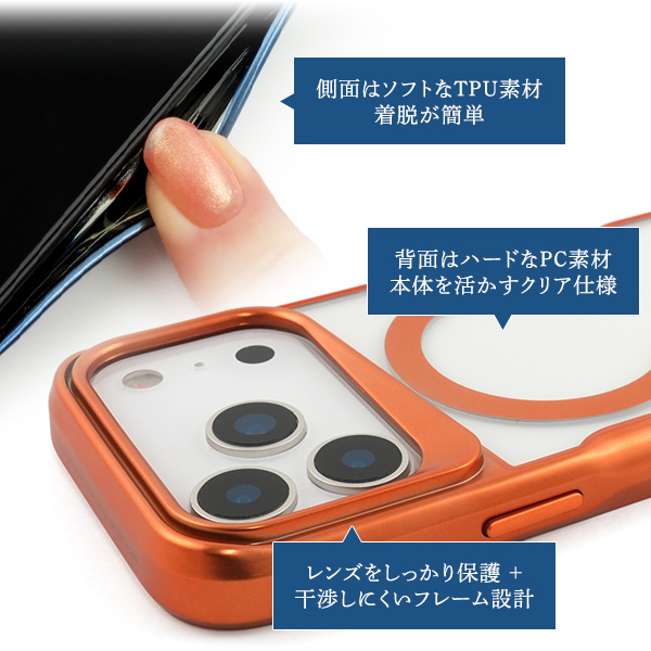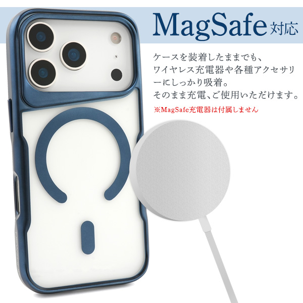 <スマホケース>iPhone 17 Pro用MagSafe対応マットメタリックバンパーソフトクリアケース