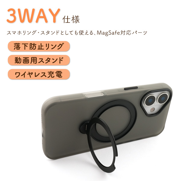 スマホリング・スタンド・ワイヤレス充電に対応。