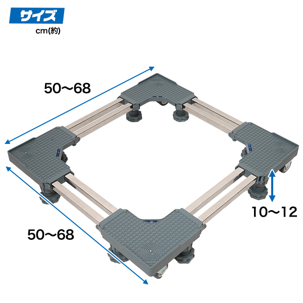 | サイズ | サイズ(約) 幅:50~68×高さ:10~12cm 重量(約) 250g セット内容 ジョイント×4・パイプ×8・ジャッキ×8 キャスター×4・水平器×4・ネジ×50(予備2個)・組み立て説明書 |