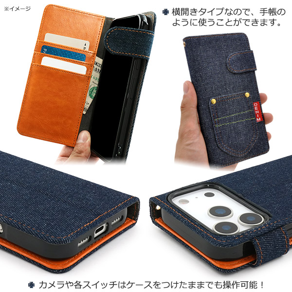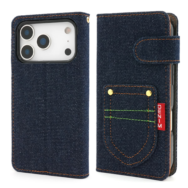 <スマホケース>iPhone 17 Pro用ポケットデニムデザイン手帳型ケース
