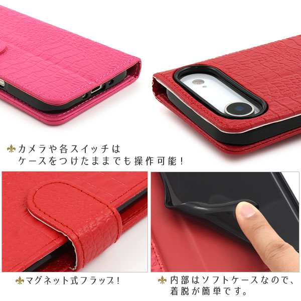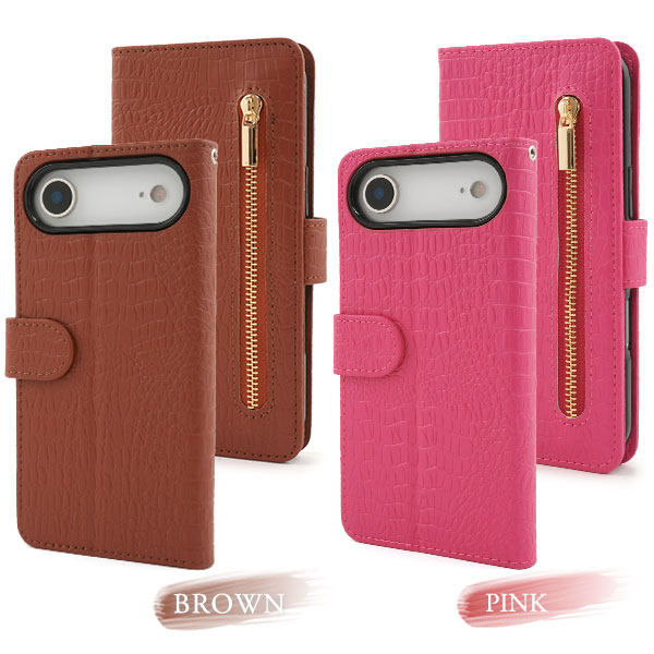 <スマホケース>iPhone Air用クロコダイルレザーデザイン手帳型ケース