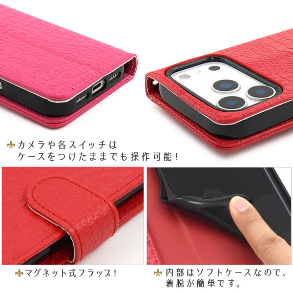 <スマホケース>iPhone 17 Pro用クロコダイルレザーデザイン手帳型ケース