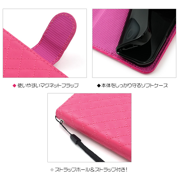 触り心地抜群のキルティングレザーを使用したオシャレな手帳型ケースです。