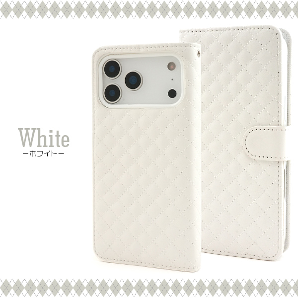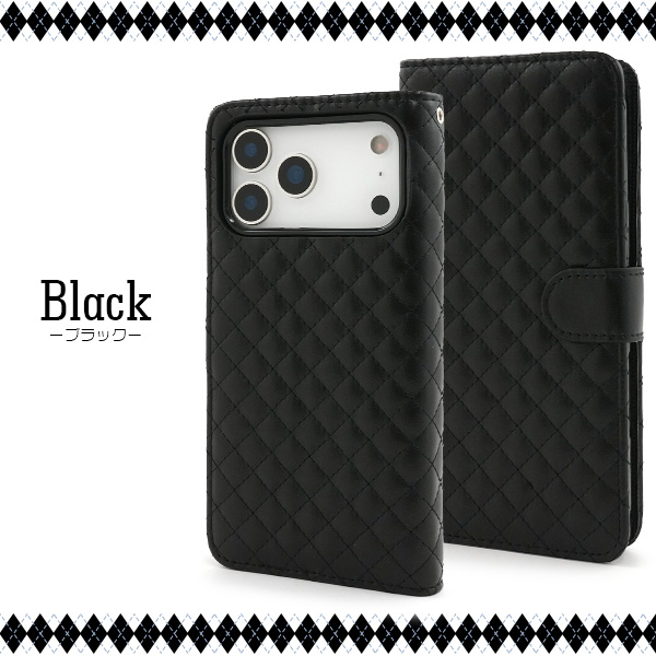 iPhone 17 Pro Max用キルティングレザー手帳型ケース