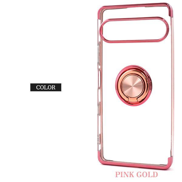 Xperia 10 VII SO-52F/SOG16/A502SO/XQ-FE44用スマホリング付きメタルカラーバンパーソフトクリアケース