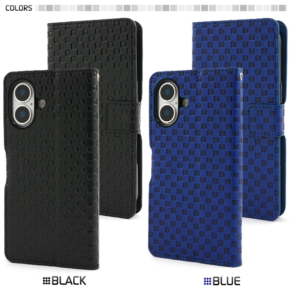 存在感抜群!市松模様レザーデザインの手帳型ケース。