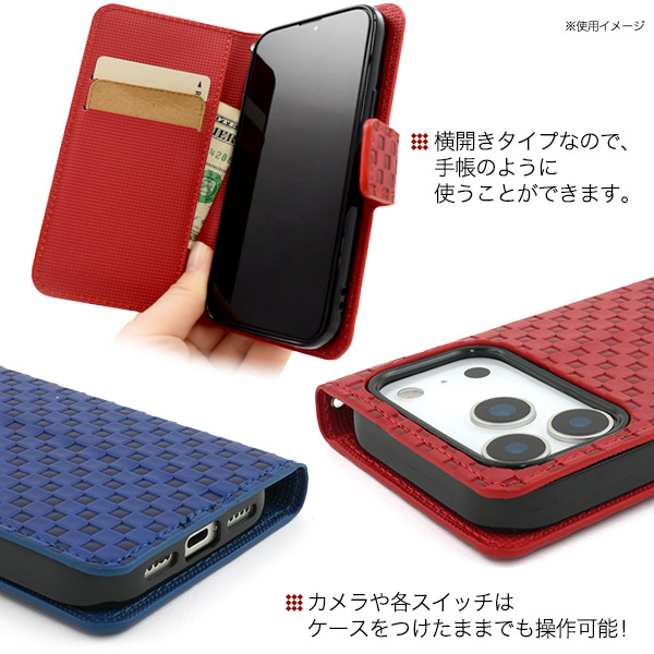 存在感抜群!市松模様レザーデザインの手帳型ケース。