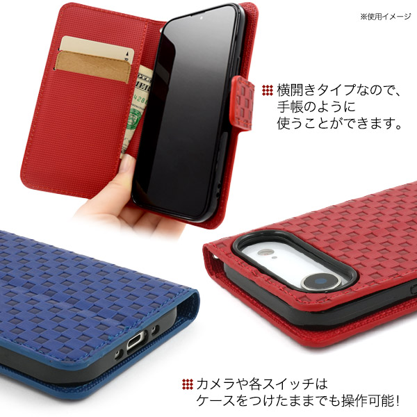 存在感抜群!市松模様レザーデザインの手帳型ケース。