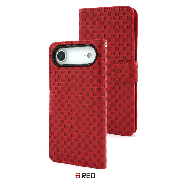 iPhone Air用市松模様デザインスタンドケースポーチ(チェックレザーポーチ)