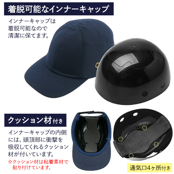 頭頂部・内側には衝撃を吸収してくれるクッション材付き!