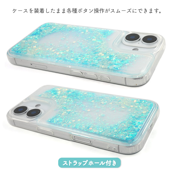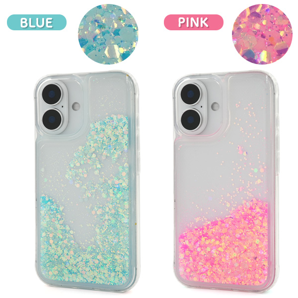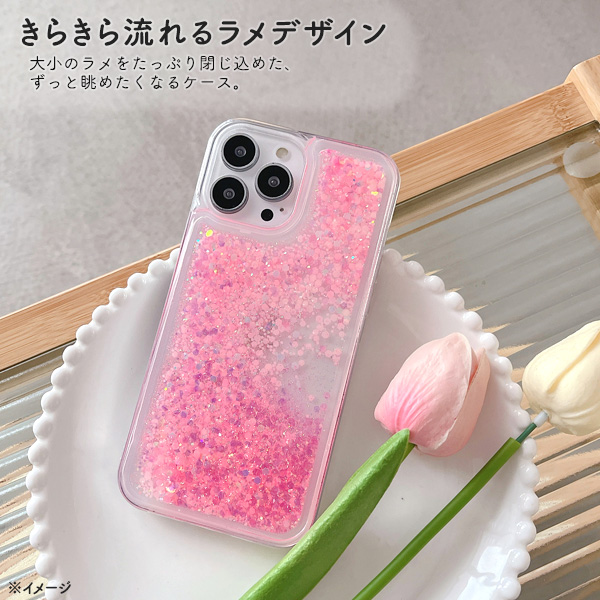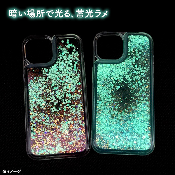 <スマホケース>蓄光ラメが暗闇で光る! iPhone 16用流れるラメケース