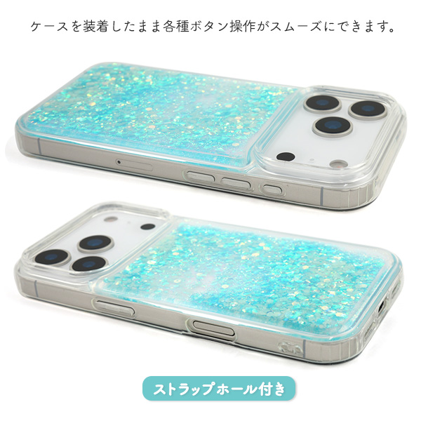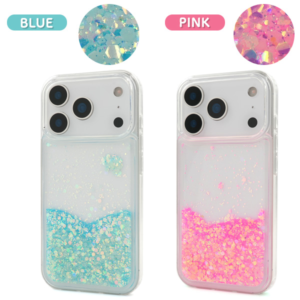 <スマホケース>蓄光ラメが暗闇で光る! iPhone 17 Pro用流れるラメケース