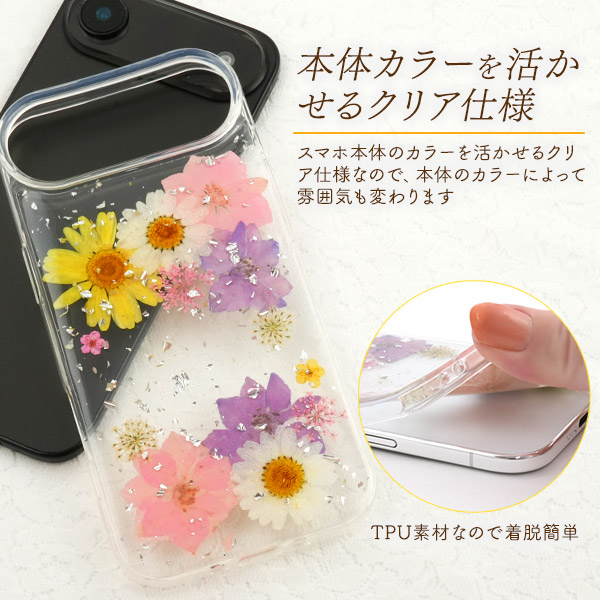 <スマホケース>iPhone Air用押し花クリアケース